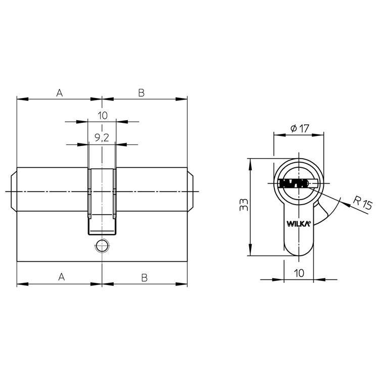 WILKA profilni varnostni cilinder 3663 dolžine 35/35 mm (A/B), nikel R6.